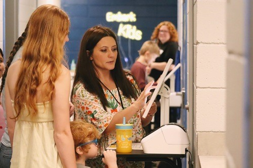 When you enter the lobby, you will see signs pointing you down the children's ministry hallway. Your first stop is the check-in station where one of our team members will help get your child checked in. They will also capture your contact information in case they need to reach you during the service.